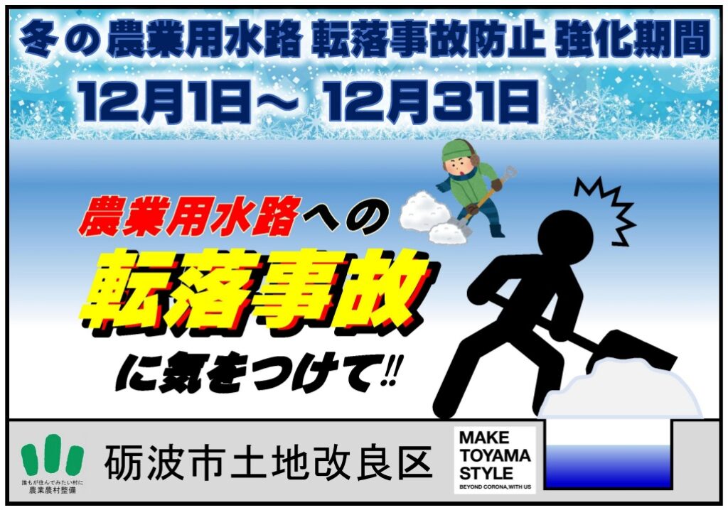 12月1日から12月31日までの1か月間を「冬の農業用水路転落事故防止強化期間」として